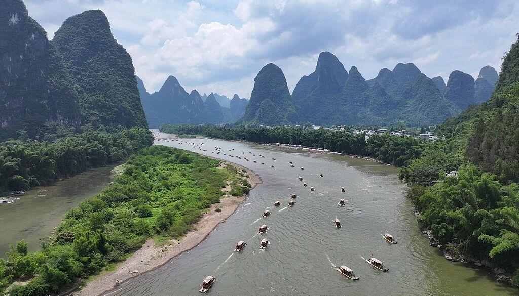 影片中,哪吒的家乡陈塘关作为故事的主要发生地,见证了哪吒的成长变化。充满奇幻色彩的陈塘关风光,设计时借鉴了广西桂林的山水景观。
