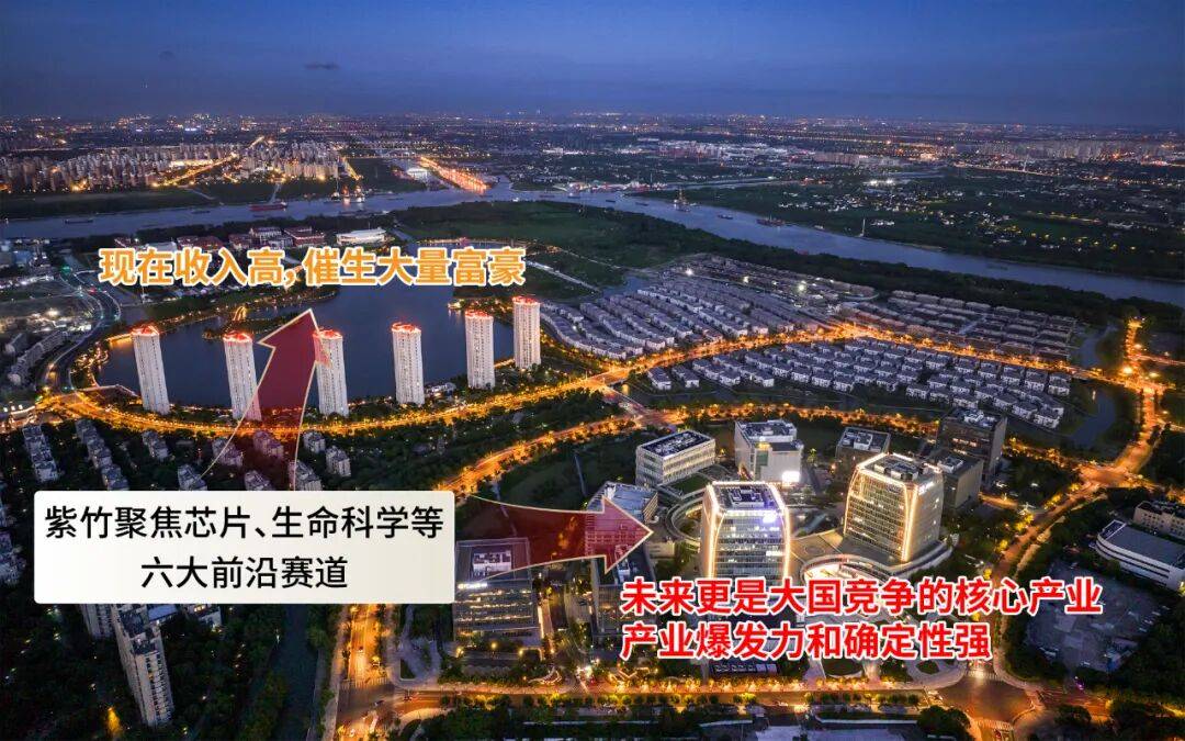 紫竹聚焦“集成电路与软件、新能源、航空航天、智能制造、数字视听、生命科学”六大前沿赛道, 微软、英特尔、可口可乐、晟碟半导体、 印孚瑟斯技术、东软集团、 中国商飞等都多家世界500强进驻。