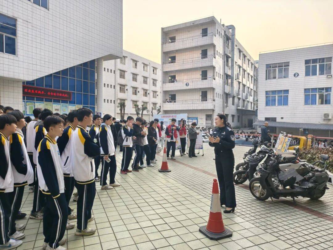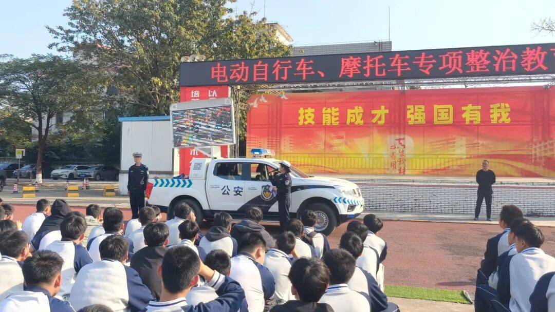 ▲1月15日下午,事故预防大队联合蓬江交管大队走进江门市工贸职业技术学校开展电动自行车安全骑行专题宣传活动。