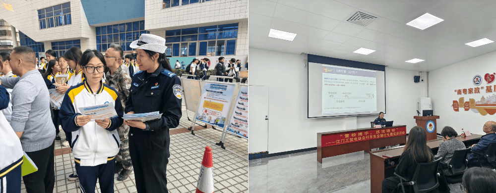 ▲1月14日下午,新会交管大队走进司前镇凤山湖中学,开展电动自行车、摩托车交通安全主题宣传活动,现场向学生及家长发放交通安全宣传资料,普及相关安全知识。