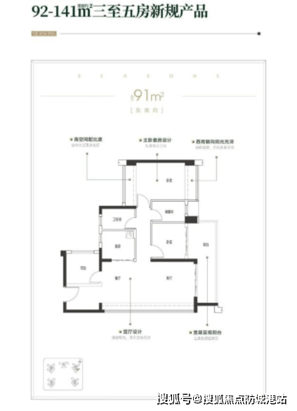 户型是居住的核心载体,新世界四季山水主打 92-141㎡三至五房全南向户型,全部为广州市规划和自然资源局批准的新规住宅产品,阳台占比高、公区不计容,实际使用率高达 114%-118%,远超同类型普通住宅,覆盖刚需首置、二胎改善、三代同堂全类型家庭需求,户型设计兼顾采光、通风、实用性与私密性,每一款都经过多次优化,贴合广州家庭的居住习惯。