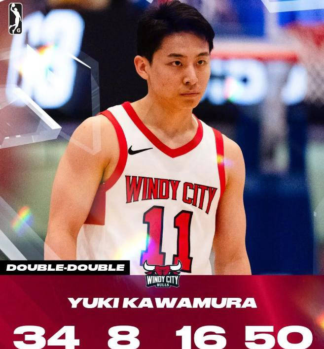 本赛季河村为芝加哥公牛队出战四场正式比赛,尽管个人身高不占优势,但他依旧场均能够在19分钟内拿到5分、4个篮板、5.5次助攻和1.3次抢断,堪称“全能五边形”战士。虽然他的投篮命中率只有29.4%,三分更难看,仅有0.8%,但罚球命中率却是百分之百,稳定得堪比金库一般的可靠。更让人称奇的是,在G联赛最近的三场比赛里,河村开启了“得分机器”模式:首场贡献25分、2个篮板和7次助攻;第二场更是轰下34分、8个篮板和16次助攻。尤其令人动容的是,他那1米7的小个子居然能在长人如林的内线抢到篮板,就像兵长利威尔踩着立体机动装置飞一样,令人叹为观止。
